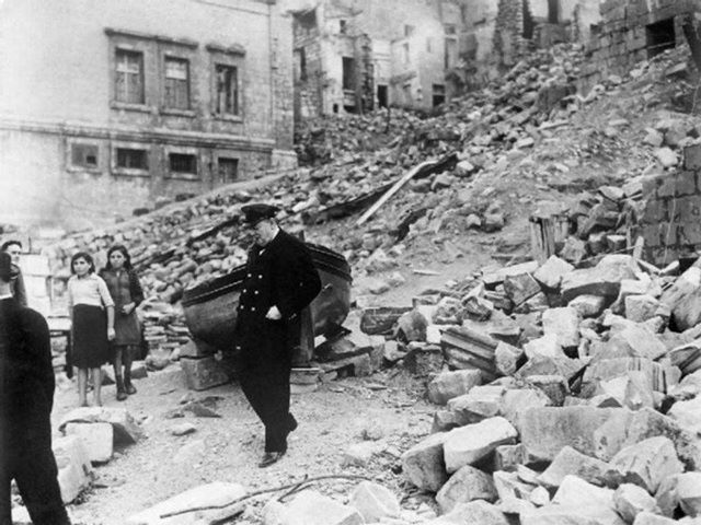 Bombed out: Sir Winston Churchill sees the damage in Senglea for himself on a visit to Malta in 1943.