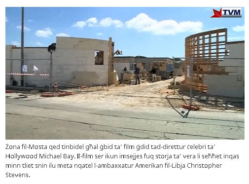 See some local Maltese newsreel of the set (doubling as the Benghazi consulate to the minutest detail at no expense spared by Paramount Pictures), located at the former Flower Power nursery: http://www.tvm.com.mt/news/jinbeda-x-xoghol-fuq-is-sett-tal-film-celebri-13-hours-fta-qali/