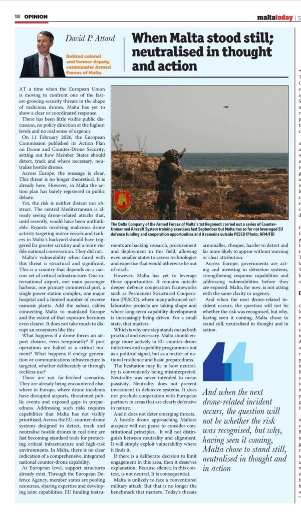 Colonel David ‘dp’ Attard’s argument lands because it’s grounded in reality, not theatrics.