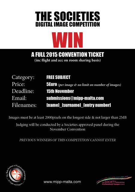 Photography panels by contestants for the Institute’s Licentiate, Associate, and Fellow qualifications will also be judged during the convention. Full programme of the MIPP’s 2014 International Photography Convention can be viewed online at web URL http://goo.gl/1EoQ8H, and booking requests can be emailed at bookings@mipp-malta.com